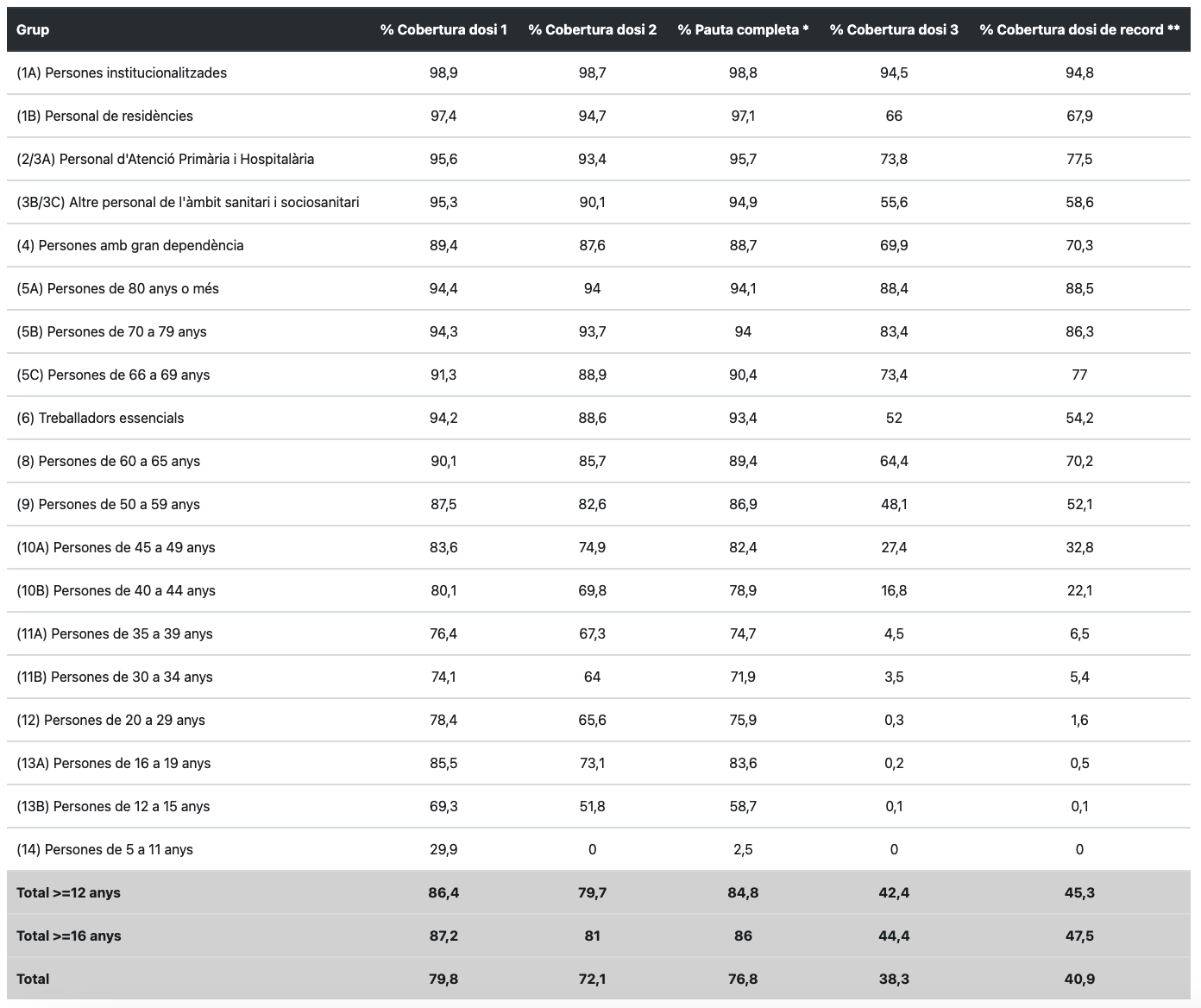 Els vacunats de la primera dosi arriben a les Terres de l’Ebre a 145.774 (79,8%) i a 140.964 (76,8%) persones amb la pauta completa.