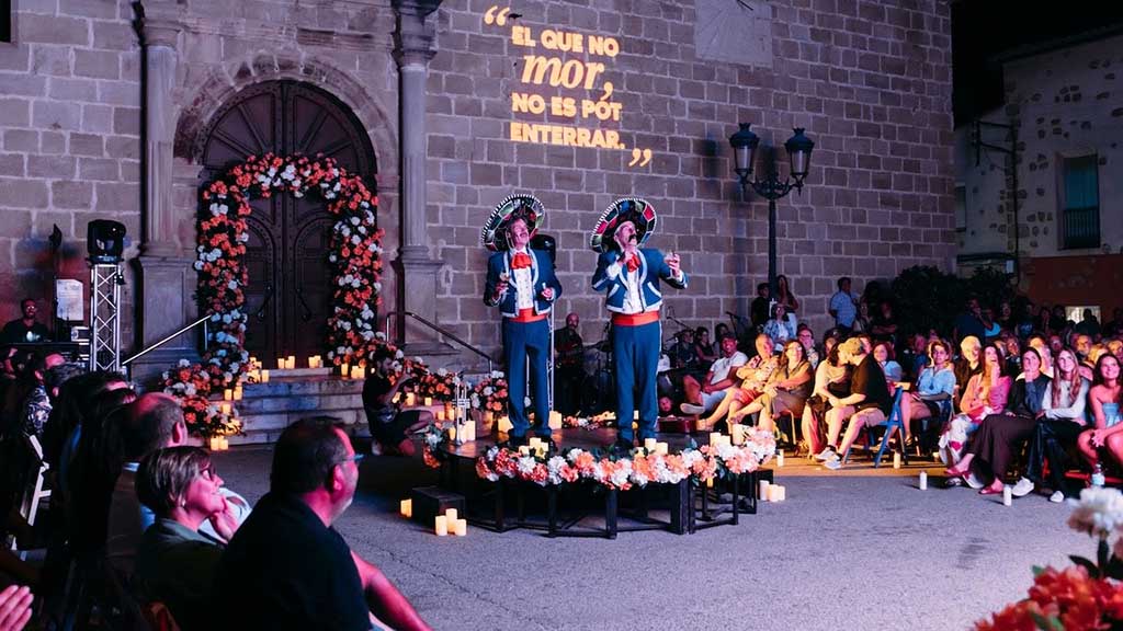 La cerimònia va incloure la projecció del tràiler del festival, rodat com sempre amb la participació dels veïns i veïnes del poble i d’altres indrets de Catalunya. Enguany, el protagonista era el “fato”, la mascota del festival, un felí fet d’origami que, tot i ser enterrat, demostrava que no pot morir. Una metàfora visual potent que s’enllaça amb el lema d’aquesta edició i que va inspirar l’arrencada de la gala: un ritual escènic d’enterrament que va donar pas als discursos institucionals i emocionals.