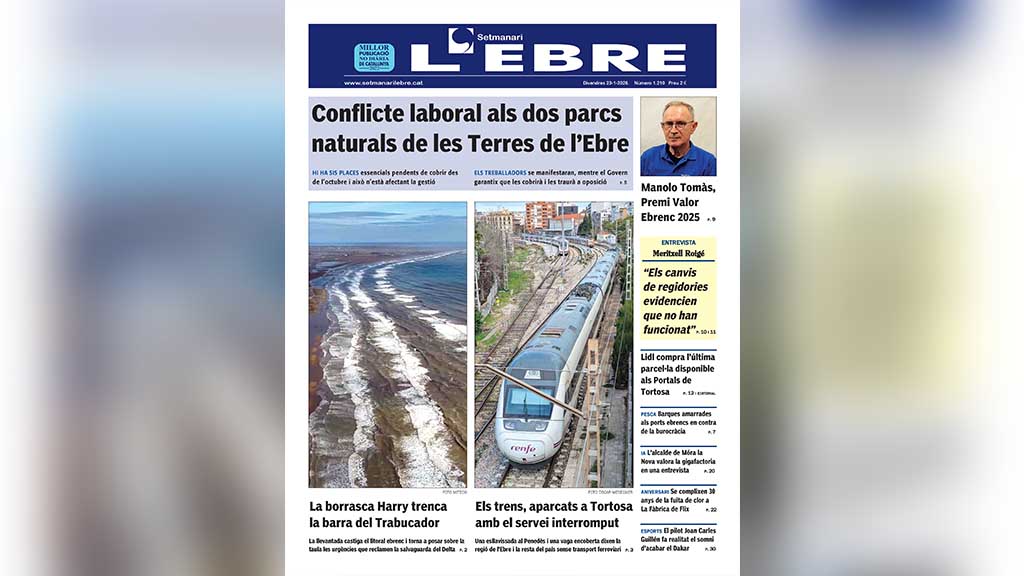 La portada de l’edició en paper número 1.210 del Setmanari l’Ebre dedica el titular principal de portada a l’interrogant que penja sobre sis places de treball considerades essencials als parcs naturals del Delta i dels Ports. Estan vacants des de l’octubre i això pot afectar la gestió d’estos espais naturals, tot i que el Govern garantix que les cobrirà i que les dotarà d’estabilitat.