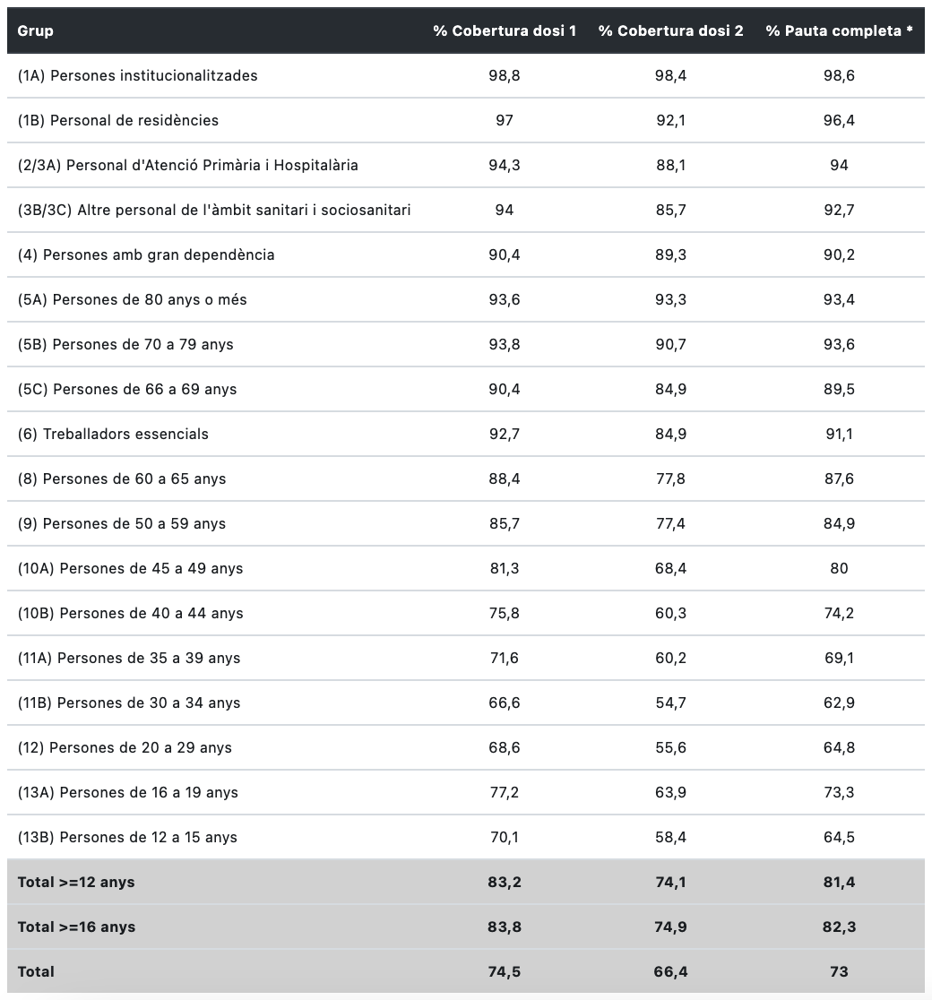 Els vacunats de la primera dosi arriben a les Terres de l’Ebre a 136.051 (74,5%) i a 133.347 (73%) persones amb la pauta completa.