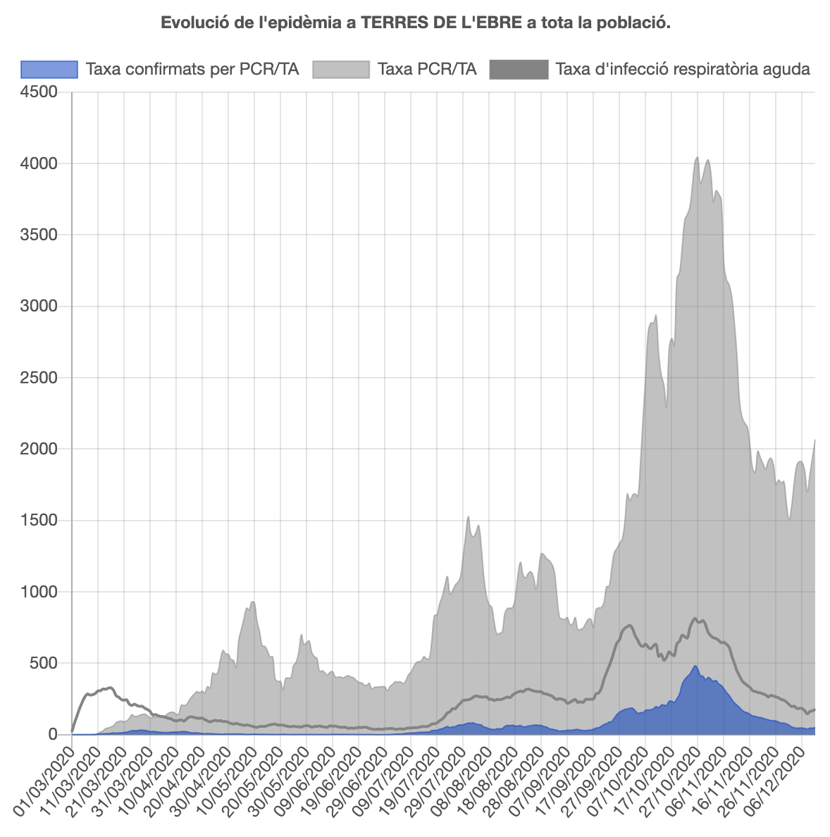 La regió sanitària de les Terres de l’Ebre acumula, des de l’inici de la pandèmia, 5.248 casos confirmats per PCR o antígens, 30 més que en el balanç anterior, i 5.485 si es tenen en compte la resta de proves. En aquesta regió han mort 122 persones, una més que en el balanç anterior. Entre el 5 i l’11 de desembre es va notificar una defunció, per les sis de l’interval anterior.