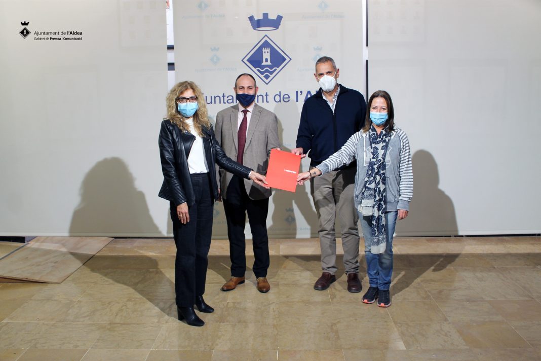 Xavier Royo, Alcalde de L’Aldea i Francisco Baena, representant de Fundació MAPFRE en el territori, han signat un acord de col·laboració per a dinamitzar les iniciatives dutes a terme dins del Programa Social d’Ús de la Fundació. Al moment de la signatura també estaven presents, Berta Royo Regidora de Acció Comercial i Foment a les Persones, i Laia Fores, agent de Mapfre a L’Aldea.