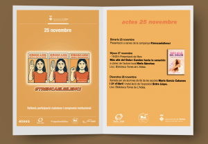 Finalment, el tercer eix és la campanya #trencaelsilenci, una iniciativa de sensibilització que busca encoratjar la ciutadania a alçar la veu i actuar davant qualsevol situació de violència o discriminació envers les dones, fent un pas més en la conscienciació i la implicació col·lectiva.