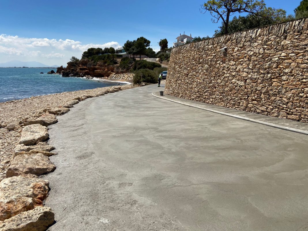 Les actuacions que s’han realitzat han estat, entre d’altres, la demolició del paviment asfàltic existent per a la posterior pavimentació d’aquest tram de vial amb formigó amb fibres i la col·locació de pedres d’escullera per evitar el deteriorament del vial en aquest punt, la formació de vorera i la realització d’una cuneta de formigó amb fibres entre les pedres d’escullera i el vial, per tal de conduir les aigües pluvials a un punt més baix i evacuar-les així de cara al mar.