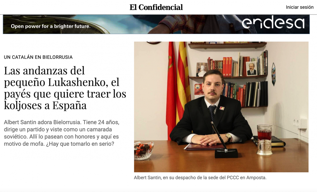 El Confidencial subtitula l’article: “Albert Santin adora Bielorússia. Té 24 anys, dirigeix un partit i es vesteix com un camarada soviètic. Allà el passegen amb honors i aquí és motiu de mofa. L’hem de prendre seriosament?”. Podeu llegir l’article sencer aquí.