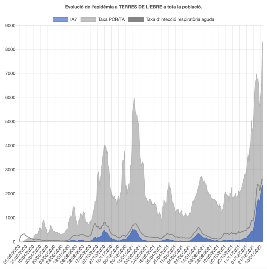Entre el 10 i el 16 gener, que és l’última setmana de la qual es tenen dades fiables, es van registrar 4.292 casos, més que la setmana anterior, quan se’n van detectar 3.460. Per comarques, el Baix Ebre ha registrat l’última setmana 1.864 positius, el Montsià 1.838, la Terra Alta 259 i la Ribera d’Ebre 326.