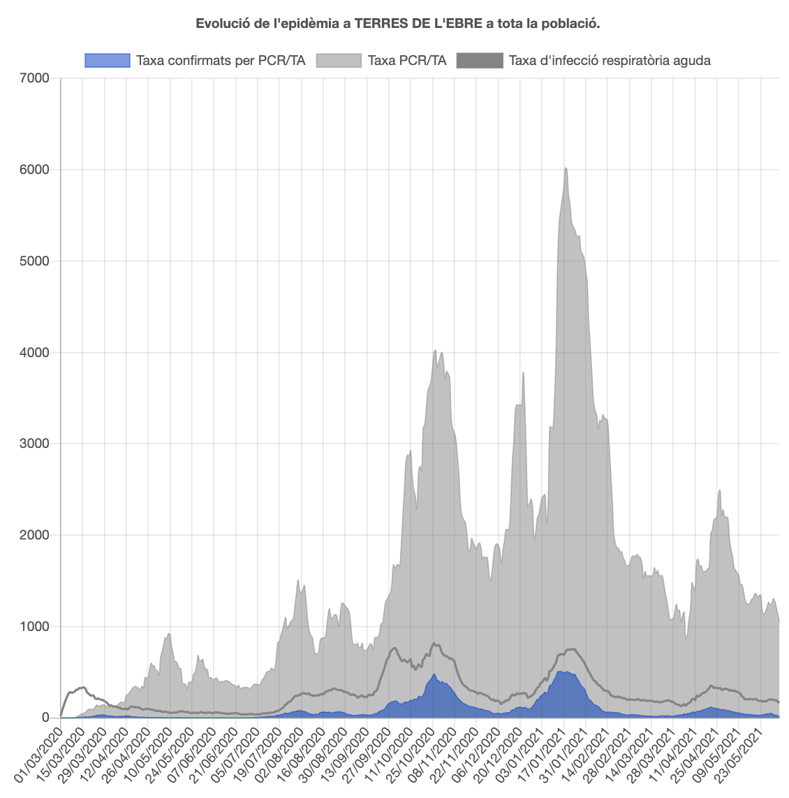 La taxa de confirmats per PCR o TA entre el 29 de maig i el 4 de juny és de 17 per cada 100.000 habitants i durant aquest període s’han detectat 31 positius, menys que la setmana anterior quan se’n van detectar 81. A hores d’ara el 2,07% de les proves que es fan donen positiu.