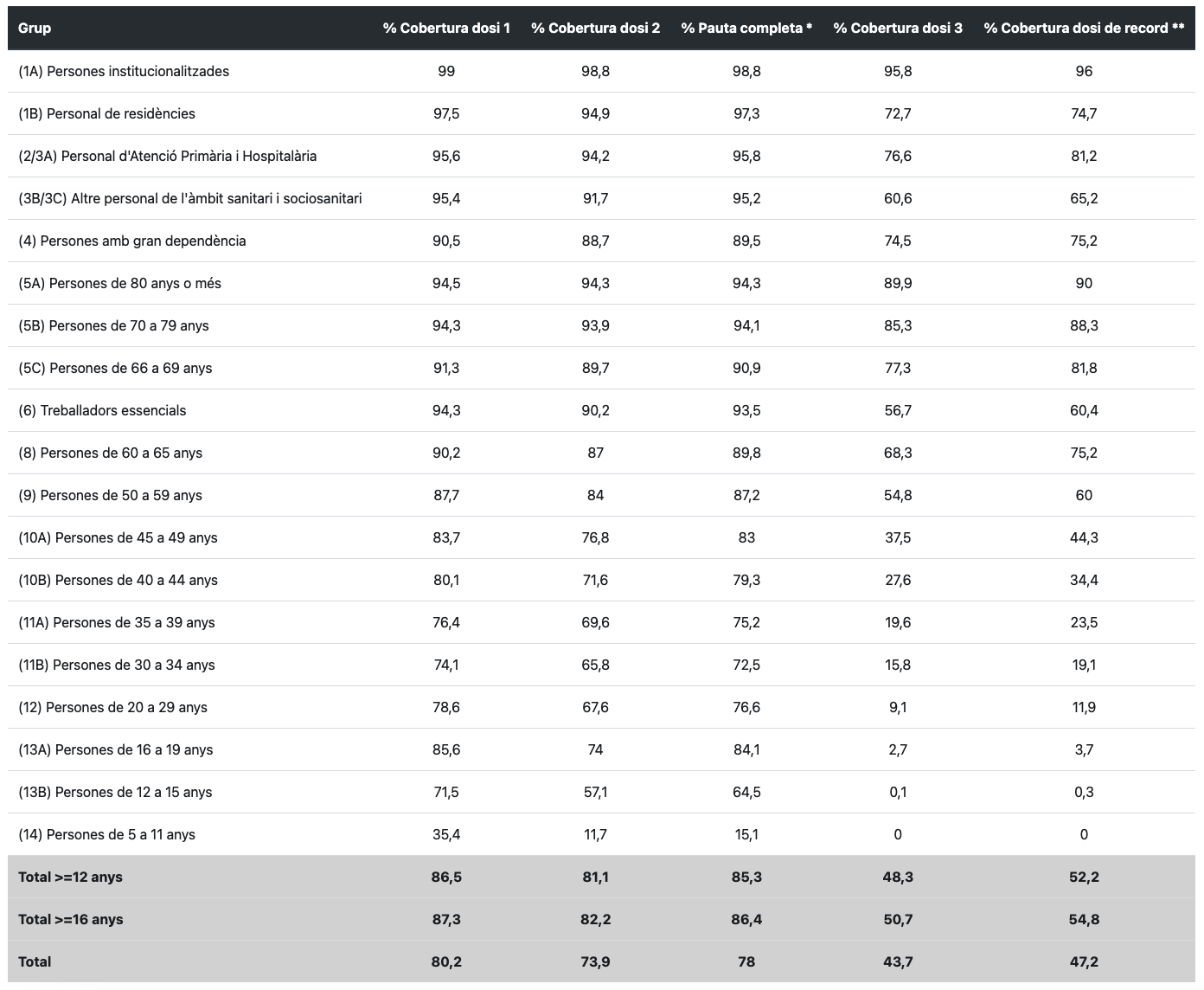 Els vacunats de la primera dosi arriben a les Terres de l’Ebre a 147.127 (80,2%) i a 143.474 (78%) les persones amb la pauta completa.