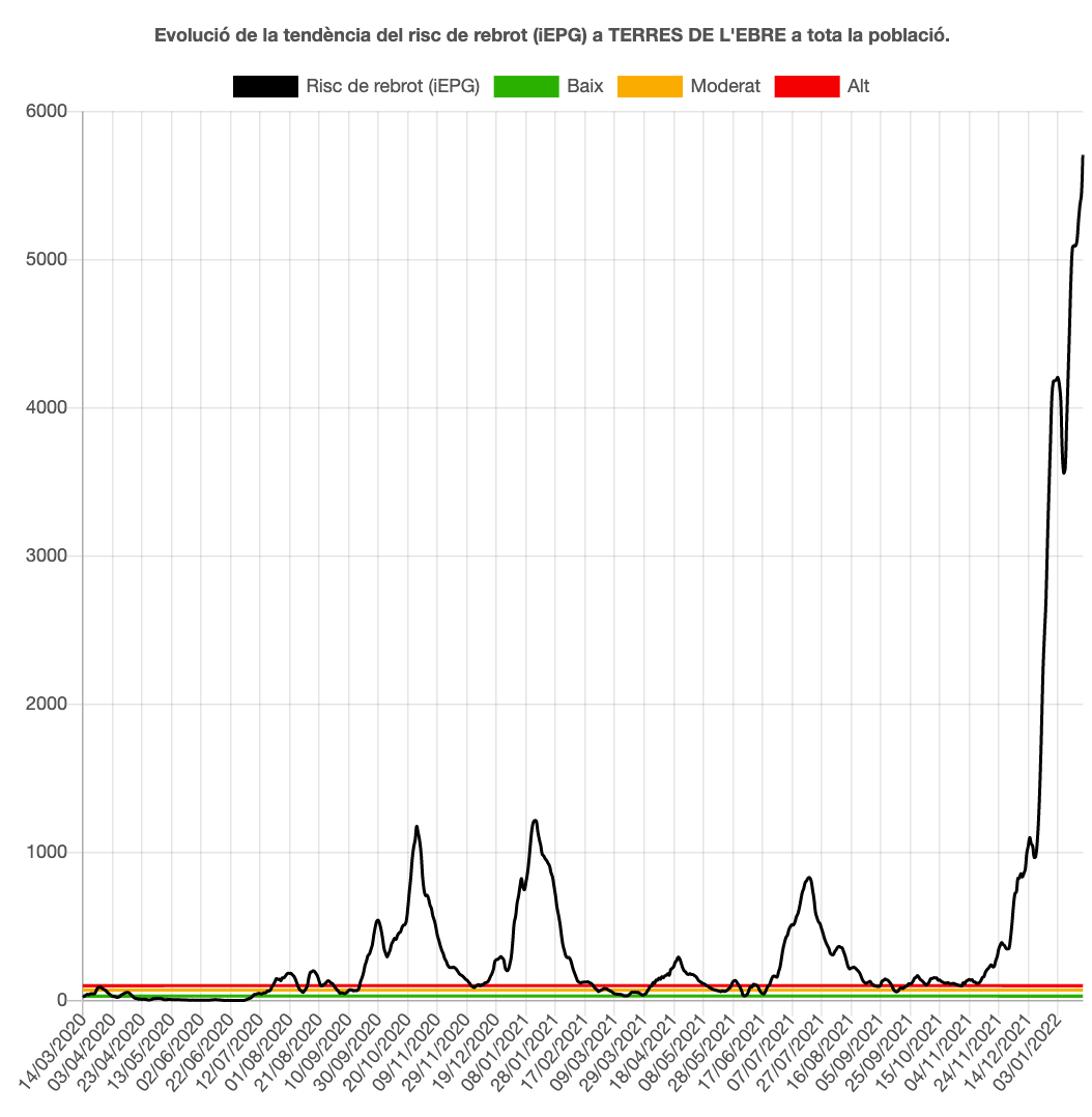 La pandèmia segueix en augment, ja que la velocitat de contagi (Rt) supera l’1 i es manté a l’1,13. El risc de rebrot puja 291 punts fins a 5.707 (risc molt alt). En cap moment de la pandèmia s’havia registrat aquest risc tan alt. Tenen un risc molt alt les quatre comarques: la Ribera d’Ebre de 4.705, el Montsià de 5.451, la Terra Alta de 7.246 i el Baix Ebre de 6.141.