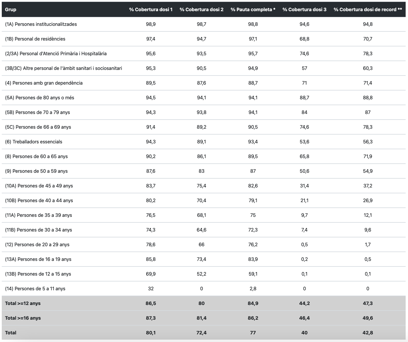 Els vacunats de la primera dosi arriben a les Terres de l’Ebre a 146.226 (80,1%) i a 141.279 (77%) persones amb la pauta completa.