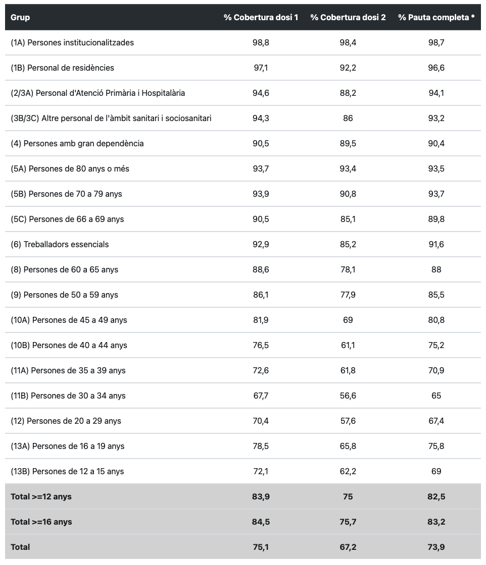 Els vacunats de la primera dosi arriben a les Terres de l’Ebre a 136.753 (75,1%) i a 134.756 (73,9%) persones amb la pauta completa.