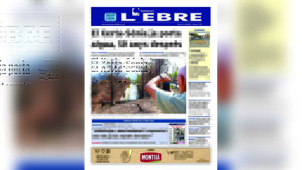 La portada de l’edició en paper número 1.190 del Setmanari l’Ebre dedica el titular i la fotografia principals a la històrica posada en marxa del regadiu Xerta-Sénia, després de dècades de polèmiques i aturades. Més d’una cinquantena d’hectàrees d’Aldover i Xerta, a la zona 1 del regadiu, ja es reguen amb aigua de l’Ebre.