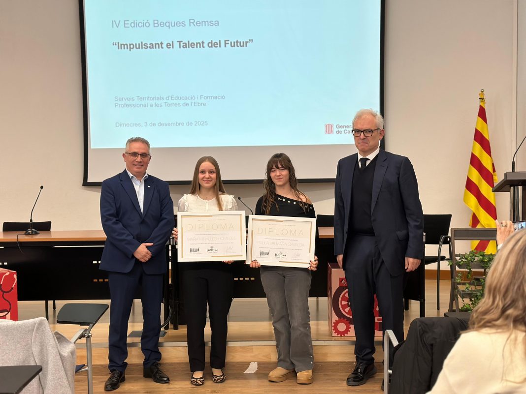 L’entrega de les beques s’ha celebrat aquest dimecres a la Sala d’actes dels Serveis Territorials d’Educació i Formació Professional a les Terres de l’Ebre. L’acte ha comptat amb la presència del director territorial d’Educació a les Terres de l’Ebre, Mario González, i del director general de Remsa, Fernando Muiño, que han felicitat personalment les estudiants i les seves famílies.