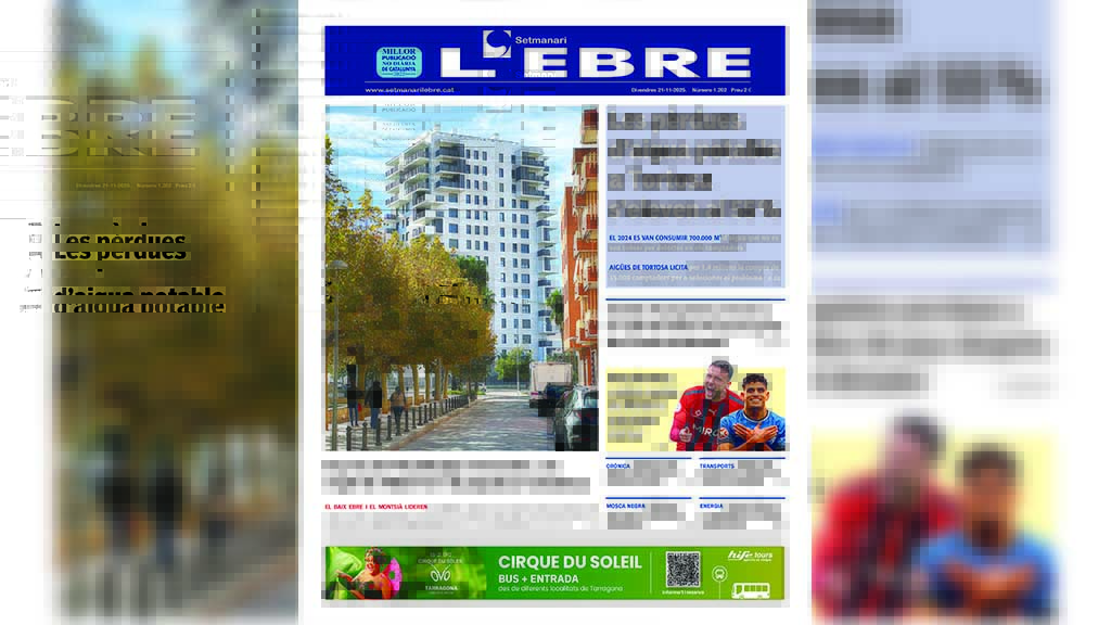 La portada de l’edició en paper del Setmanari l’Ebre número 1202 dedica el titular principal de portada a l’increment de les pèrdues d’aigua potable a la xarxa de Tortosa, que ja s’eleven fins al 55 % i que no totes són causades per fuites, ja que el 2024 es van arribar a consumir 700.000 metres cúbics que no es van cobrar per defectes en els comptadors. Aigües de Tortosa haurà d’instal·lar 15.000 comptadors nous per a resoldre esta part del problema.