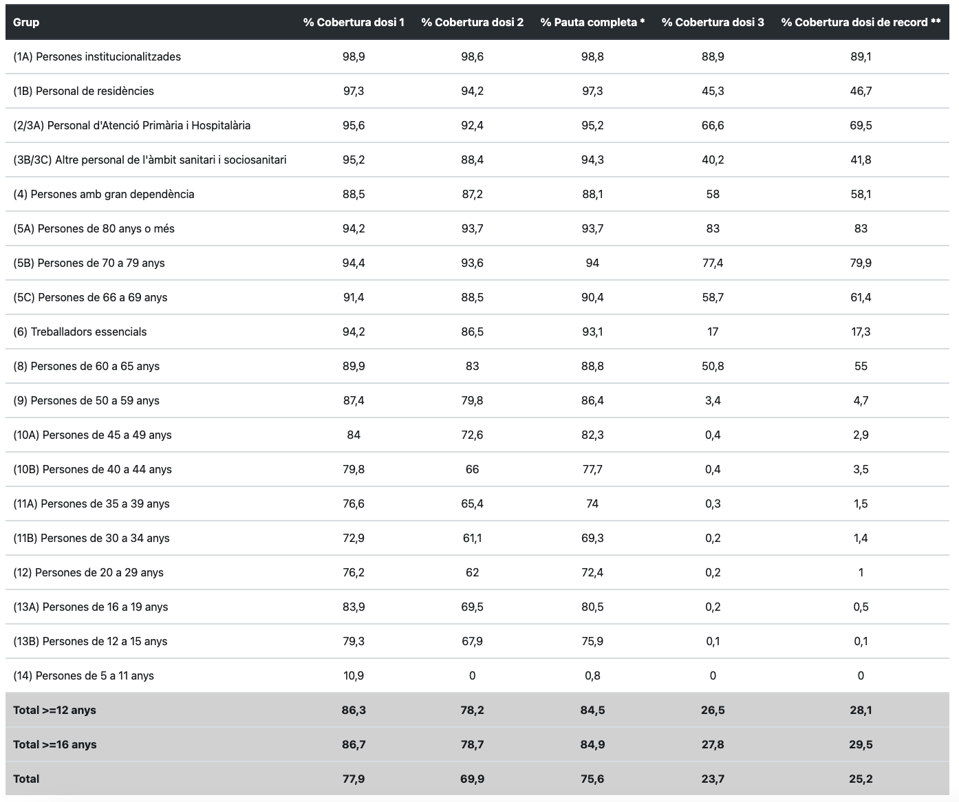 Els vacunats de la primera dosi arriben a les Terres de l’Ebre a 142.510 (77,9%) i a 138.764 (75,6%) persones amb la pauta completa.