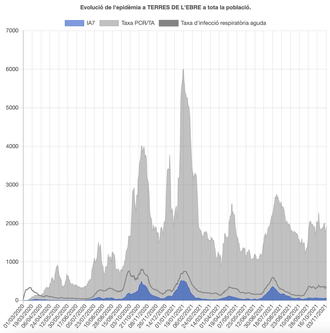Segons dadescovid.cat, hi ha 12 persones ingressades per Covid-19, igual ahir, 3 de les quals a l’UCI. A les Terres de l’Ebre han mort 191 persones des de l’inici de la pandèmia, cap més. Les dues últimes defuncions daten 30 de setembre i del 29 d’octubre. La incidència a 7 dies és de 63 i a 14 dies és de 110. El 3,83% de les proves que es fan donen positiu.