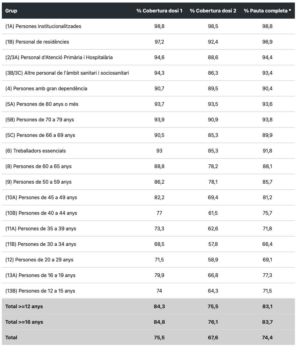 Els vacunats de la primera dosi arriben a les Terres de l’Ebre a 137.530 (75,5%) i a 135.842 (74,4%) persones amb la pauta completa.