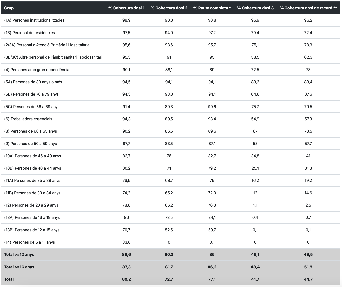 Els vacunats de la primera dosi arriben a les Terres de l’Ebre a 146.610 (80,2%) i a 141.572 (77,1%) les persones amb la pauta completa.
