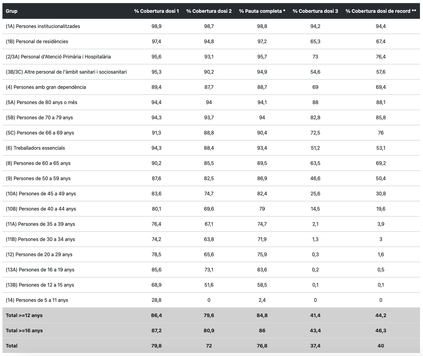 Els vacunats de la primera dosi arriben a les Terres de l’Ebre a 145.629 (79,8%) i a 140.853 (76,8%) persones amb la pauta completa.