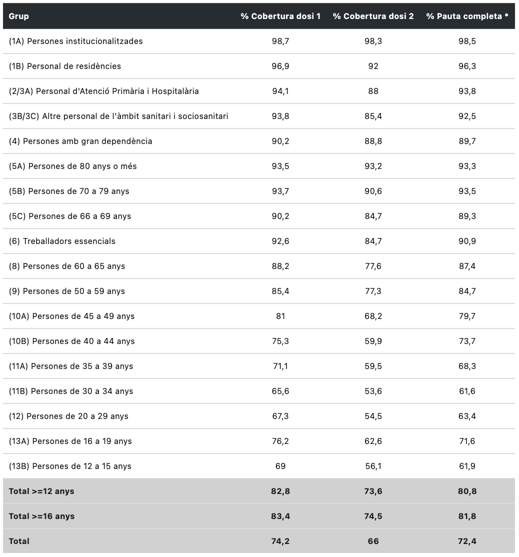 Els vacunats de la primera dosi arriben a les Terres de l’Ebre a 135.349 (74,2%) i a 132.270 (72,4%) persones amb la pauta completa.