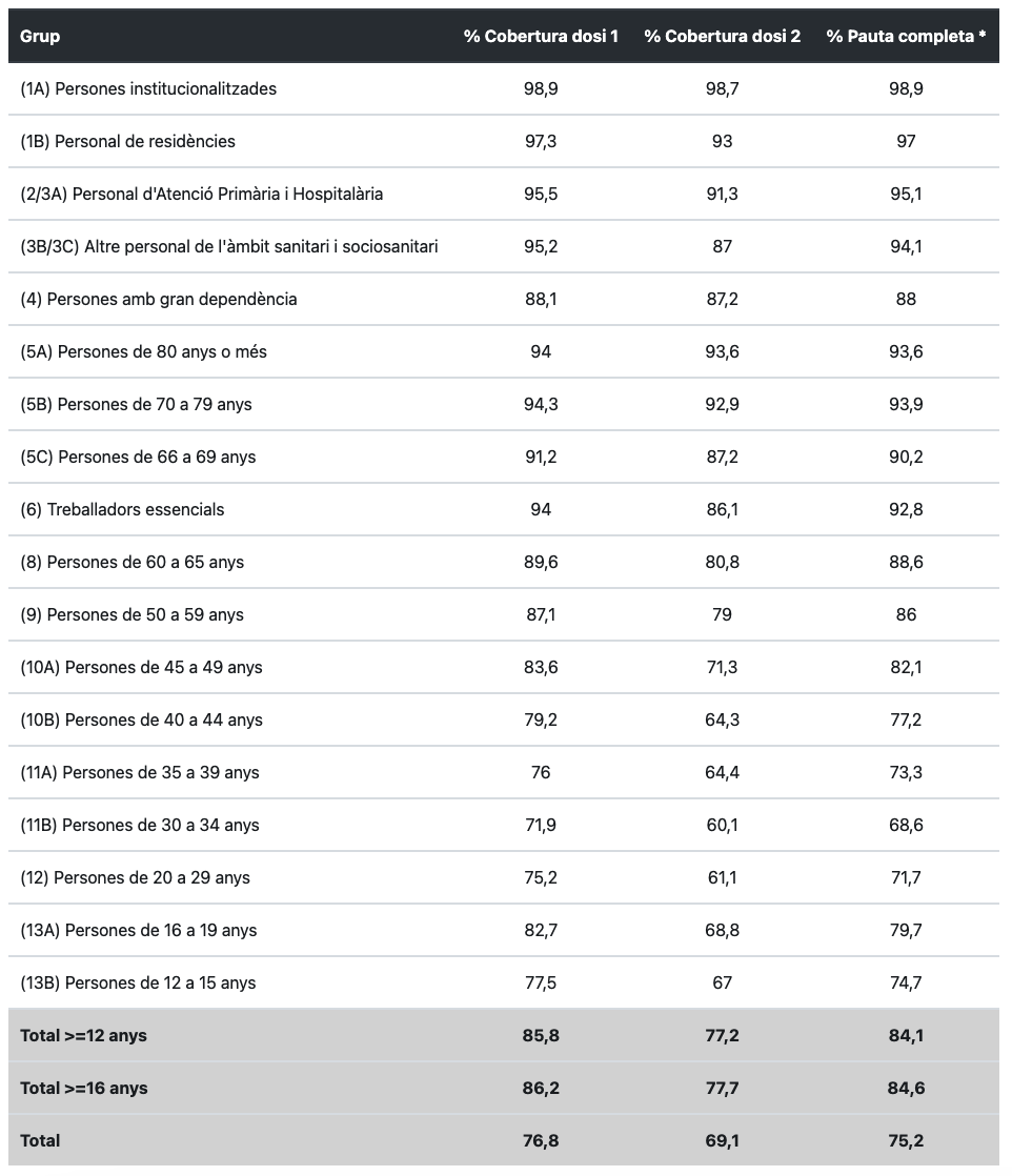 Els vacunats de la primera dosi arriben a les Terres de l’Ebre a 140.333 (76,8%) i a 137.940 (75,2%) persones amb la pauta completa.