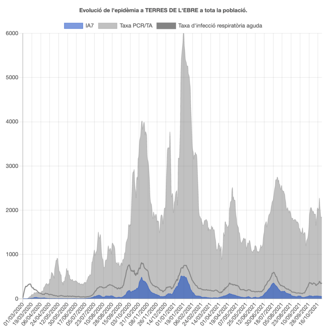 Segons dadescovid.cat, hi ha 11 persones ingressades per Covid-19, igual que ahir, 4 de les quals a l’UCI. A les Terres de l’Ebre han mort 190 persones des de l’inici de la pandèmia, cap més. Les dues últimes defuncions daten de l’11 i del 30 de setembre. La incidència a 7 dies és de 54 i a 14 dies és de 116. El 3,26% de les proves que es fan donen positiu.
