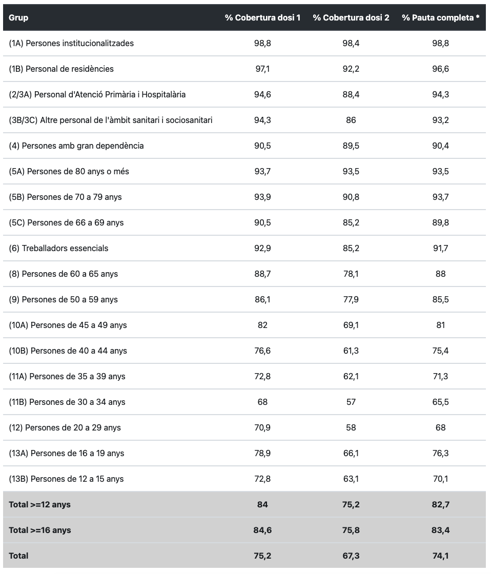 Els vacunats de la primera dosi arriben a les Terres de l’Ebre a 137.067 (75,2%) i a 135.215 (74,1%) persones amb la pauta completa.