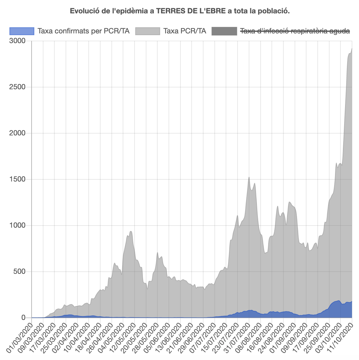 La regió sanitària de les Terres de l’Ebre acumula, des de l’inici de la pandèmia, 2.060 casos confirmats per PCR, 47 més que en el balanç anterior, i 2.258 si es tenen en compte la resta de proves. En aquesta regió han mort 66 persones, les mateixes que en l’últim balanç. El risc de rebrot puja 7 punts i ara és de 385,29. La setmana anterior era de 330,97. Les Terres de l’Ebre és la quarta regió catalana amb el risc de rebrot més alt, per darrere de la Catalunya Central (504,36), Barcelona Ciutat (439,26) i Lleida (395,11).