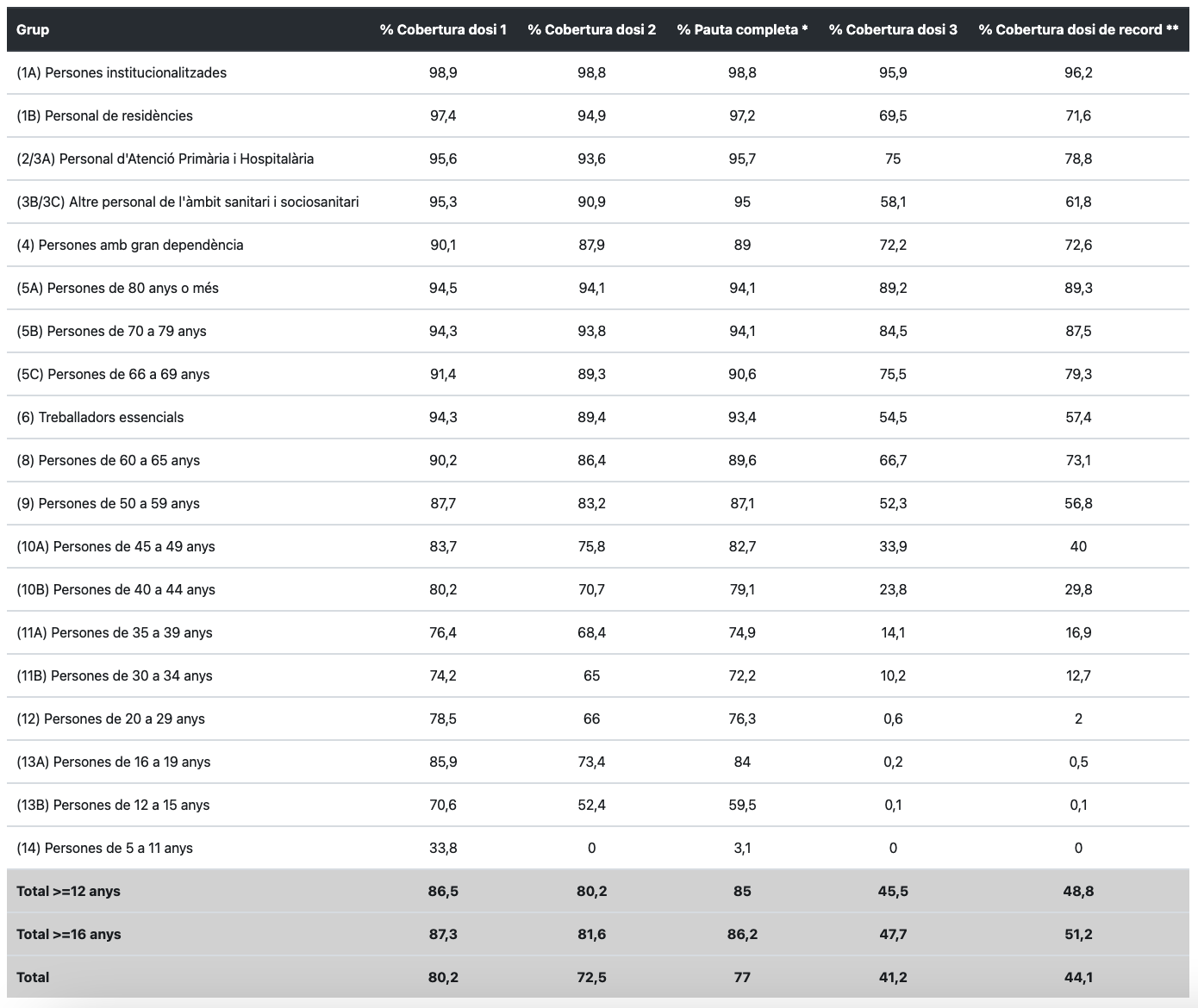 Els vacunats de la primera dosi arriben a les Terres de l’Ebre a 146.524 (80,2%) i a 141.493 (77%) les persones amb la pauta completa.
