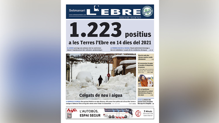 L’edició en paper número 963 del Setmanari L’EBRE destaca a portada els dos temes de la setmana al territori: l’increment de contagis en general i a les Terres de l’Ebre en particular, amb més de 1.200 casos positius en les dos primeres setmanes de l’any, i el temporal Filomena, protagonista de la secció de Primera Plana del periòdic, amb set pàgines en què es recull la situació d’aïllament que han viscut alguns pobles de l’interior, l’impacte recurrent sobre el Delta i les imatges més destacades de la nevada més important del segle a les Terres de l’Ebre.
