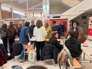 Després de les sessions informatives a les aules, l’activitat va continuar al vestíbul del centre amb un espai d’atenció individualitzada, on es van poder resoldre dubtes i obtenir informació més detallada sobre les oportunitats disponibles.