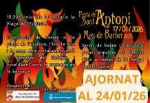 Mas de Barberans viurà el dissabte 24 de gener una nova edició de la Festa de Sant Antoni, una de les celebracions tradicionals més arrelades al municipi, i que s’iniciarà a les 18.30 h a la Plaça de l’Església. La programació inclou diversos espectacles de carrer que recorreran la plaça de l’Església, l’Era la Vila … Continua llegint Mas de Barberans celebrarà la Festa de Sant Antoni amb foc i espectacles