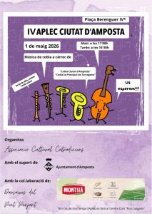 El IV Aplec de Cobles tindrà lloc el divendres 1 de maig a la Plaça Berenguer IV, amb dues sessions programades: una a les 11h del matí i una altra a les 16:30h de la tarda. L’accés i la participació són gratuïts.