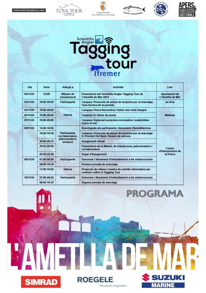 L’Ametlla de Mar ha presentat aquest matí la 6a missió del Scientific Angler Tagging Tour que tindrà lloc aquest cap de setmana, del 8 al 10 de novembre. Aquesta missió és una de les iniciatives de ciència ciutadana més rellevant del Mediterrani on científics de l’Institut Francès d’Investigació Marina (IFREMER) i pescadors recreatius de diferents zones d’Espanya s’uneixen per al marcatge electrònic i l’anàlisi genètica de les tonyines.
