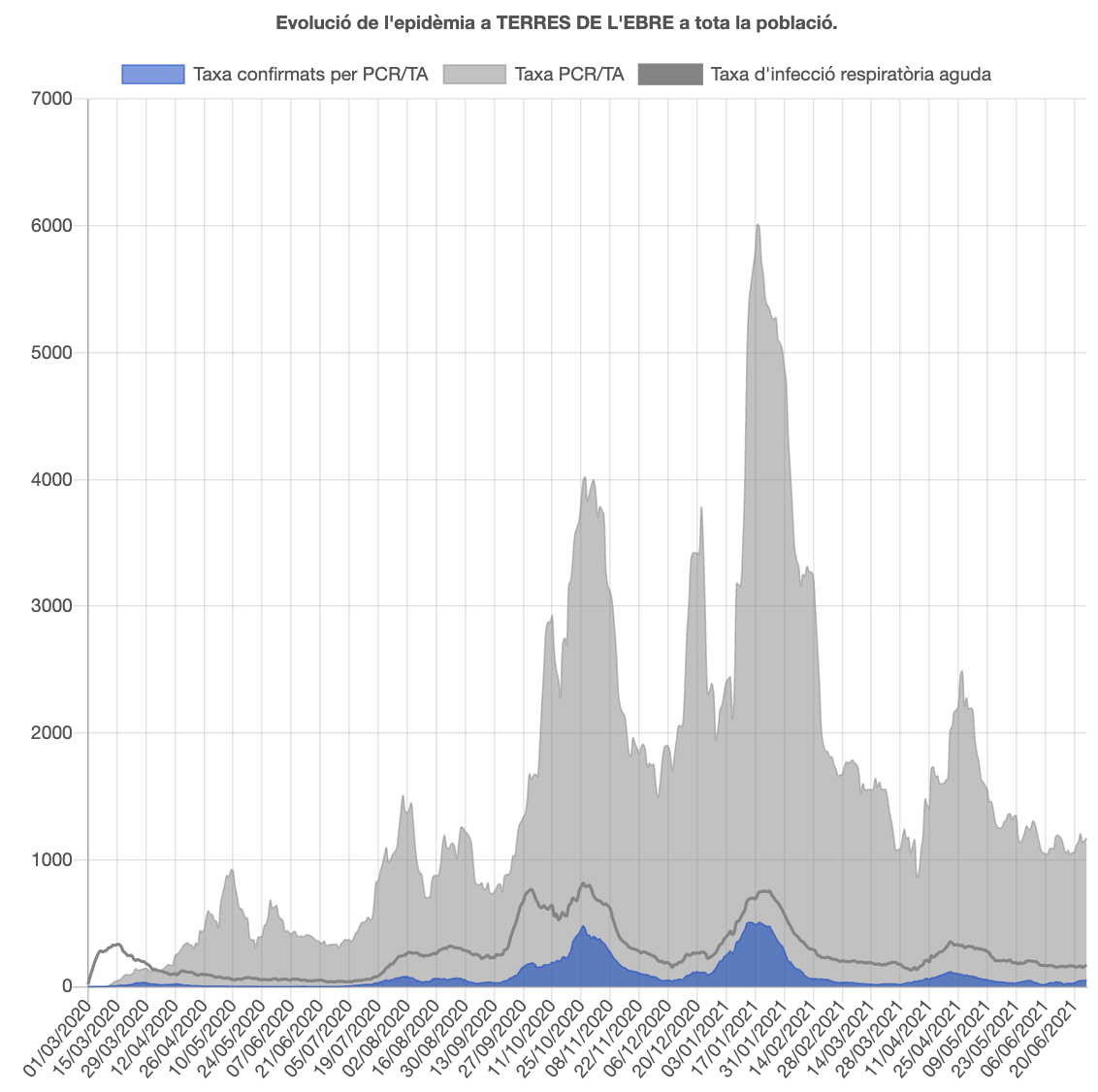 La incidència a 14 dies és de 78 i s’han declarat 18 nous positius per PCR o test d’antigen, cosa que eleva la xifra total en 10.979, 11.329 si es tenen en compte la resta de proves. La taxa de confirmats per PCR o TA entre el 20 i el 26 de juny és de 52 per cada 100.000 habitants i durant aquest període s’han detectat 94 positius, 76 dels quals a la comarca del Baix Ebre. A hores d’ara el 4,72% de les proves que es fan a l’Ebre donen positiu. No s’ha detectat cap mort i el total és de 180.