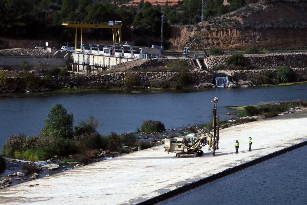 La Confederació Hidrogràfica de l’Ebre (CHE) repara les escletxes i filtracions de l’assut de Xerta aplicant injeccions de resina i ciment a l’estructura. Es tracta d’una actuació reclamada històricament per les comunitats de regants de l’Ebre amb l’objectiu d’evitar el progressiu deteriorament de l’estructura i l’agreujament dels danys amb el pas del temps. L’inici dels treballs, el 18 de setembre passat, ha deixat la insòlita imatge d’un assut totalment eixut per possibilitar els treballs, que s’allargaran durant un any i mig -inclosos períodes de suspensió per garantir la funcionalitat i els usos-. Les obres tenen un cost de 992.768 euros, IVA inclòs, que hauran d’acabar pagant els usuaris -regants i la central hidroelèctrica de Xerta-.