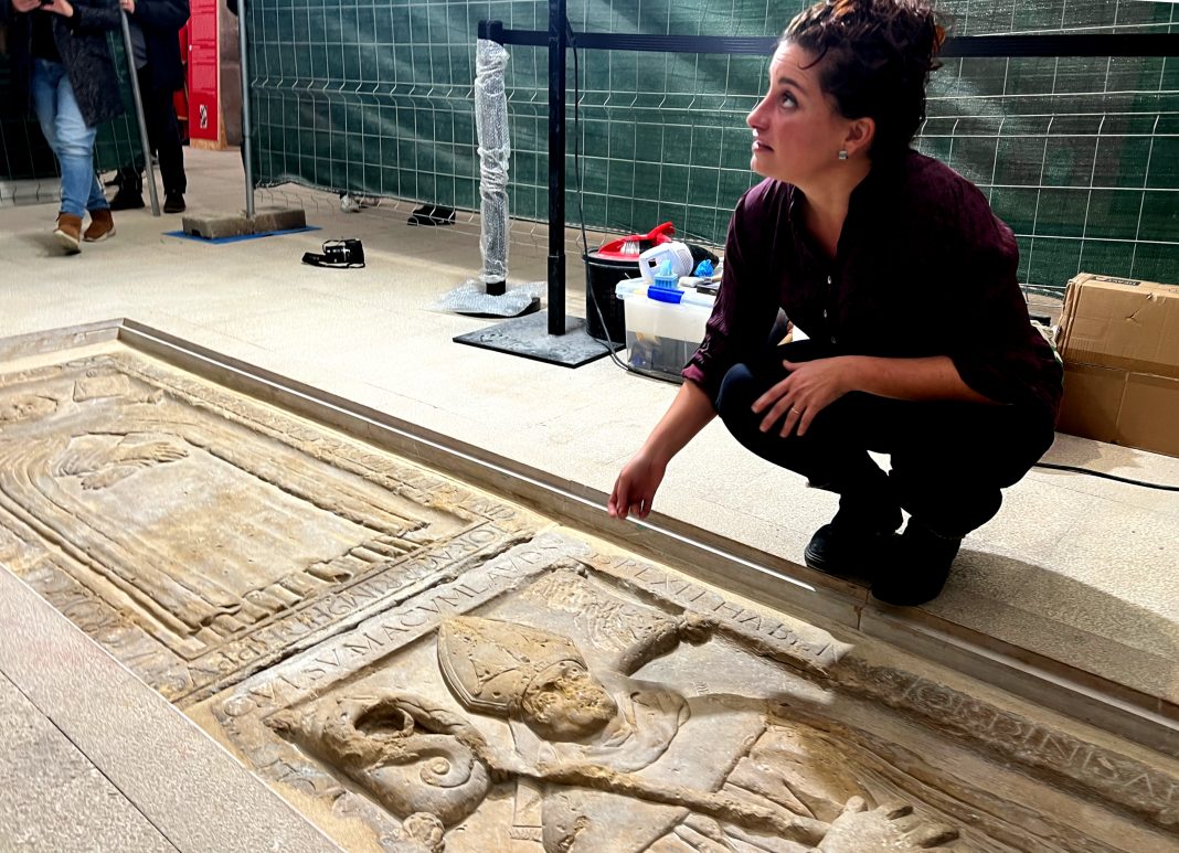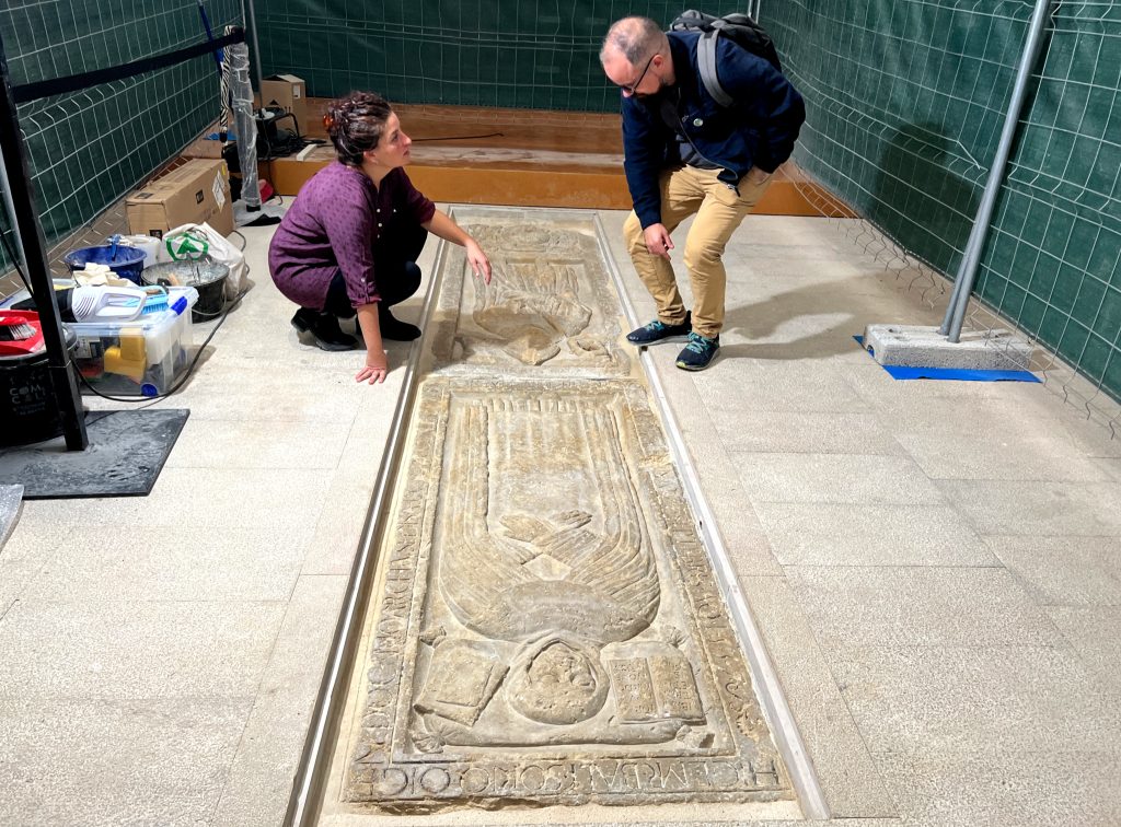 També s’ha fet una consolidació de les parts més «arenitzades», més desfetes, perquè havien estat trepitjades en èpoques en què les sepultures no estaven protegides per cap vidre. Les fissures s’han segellat amb morter de calç hidràulica i s’han fet retocs cromàtics. «Hi ha molts picats per culpa d’aquest ús que es va fer l’espai», ha dit la restauradora. Amb aquests treballs també s’ha consolidat la policromia i falta «agafar-ne mostres per a poder analitzar i detectar si és original o d’èpoques anteriors”, així com “la seva naturalesa».