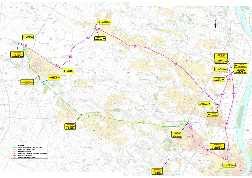 Per les obres de condicionament que s’estan duent a terme a la carretera T-342, entre Roquetes i els Reguers, la via romandrà tallada en la seva totalitat des del dilluns 6 de maig i fins al mes d’agost, aproximadament.