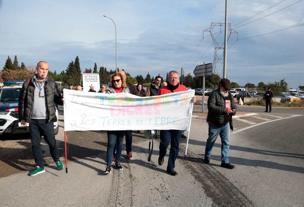 Durant mitja hora aproximadament, la manifestació ha tallat la rotonda d’accés a l’autopista Ap-7 i la carretera C-42 a l’Aldea. Amb consignes com “Les Terres de l’Ebre també som de primera” o “Volem trens dignes”, la trentena de participants han criticat que cap de les peticions que havia fet la plataforma Trens Dignes hagi rebut resposta al nou pla ferroviari català. Una de les peticions que feia l’entitat era afegir una freqüència al tren Avant, així com modificar-ne l’horari de l’actual perquè sortís més d’hora. La plataforma també lamenta que no s’han recuperat els trens semidirectes a Barcelona després de les obres al túnel de Roda de Berà, fet que comporta que no hi hagi cap tren ràpid que comuniqui les Terres de l’Ebre amb la capital de la demarcació tarragonina. Entre la resta de reivindicacions destaquen la redacció del pla director de mobilitat dels Terres de l’Ebre i l’autoritat territorial dels Terres de l’Ebre, amb què confien que es simplificaria el sistema de tarifes i permetria una planificació “verídica i real” del transport públic.