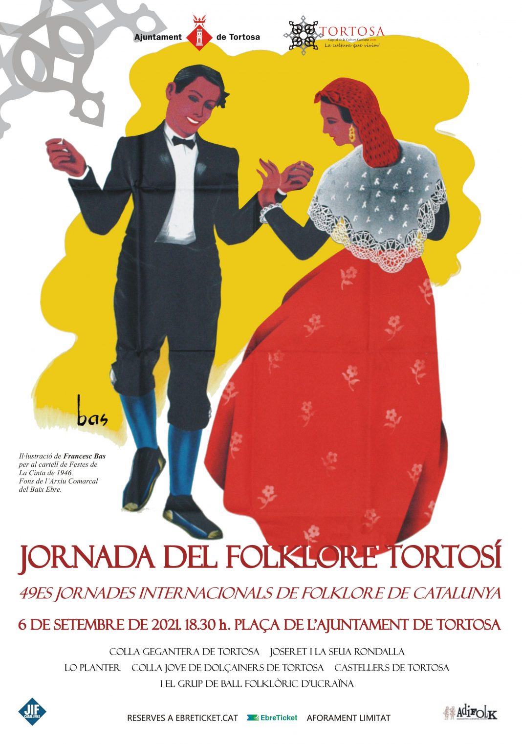 Tortosa serà enguany una de les 19 ciutats catalanes que acollirà la 49a edició de les Jornades Internacionals Folklòriques de Catalunya, promogudes per l’Adifolk. Tenen lloc del 3 al 12 de setembre arreu del país i, en el cas de Tortosa, es duran a terme el dilluns 6 de setembre en el marc de la Capital de la Cultura Catalana i dins del programa de les festes majors Cinta 2021. Concretament, amb la Jornada del Folklore Tortosí, que es desenvoluparà durant la tarda a la plaça de l’Ajuntament.