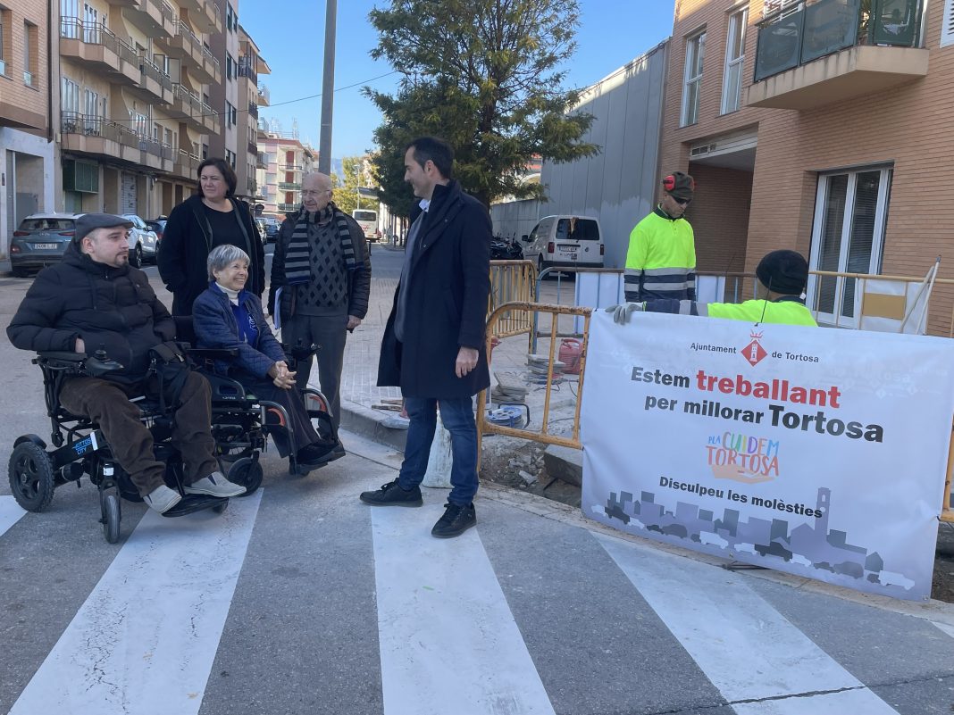 L’alcalde de Tortosa, Jordi Jordan, acompanyat de la regidora de Serveis Municipals, Marga Abelló, el regidor de Mobilitat, Francesc Vallespí, i representants de l’Associació per la Integració de Discapacitats de l’Ebre (ASSIDE), ha visitat aquest dimecres els treballs al carrer Ronda Docs. “Treballem per fer de Tortosa una ciutat més amable i accessible per a tothom, amb més atenció a la via pública“, ha destacat Jordan.