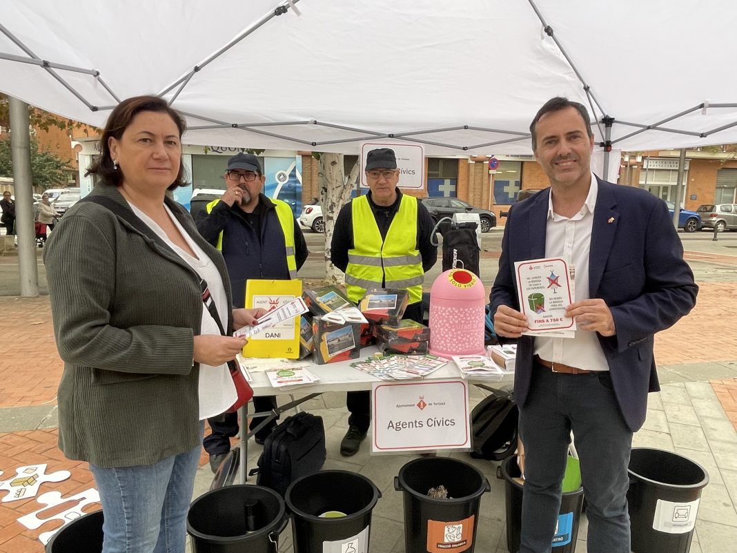 L’Ajuntament de Tortosa ha sumat dos nous agents cívics mitjançant el programa Treball i Formació, finançat pel Servei d’Ocupació de Catalunya i gestionat per Tortosactiva, per intensificar durant els pròxims mesos les campanyes de civisme als barris de la ciutat. Aquest novembre, els agents han posat en marxa una nova acció informativa centrada en la gestió de residus i la circulació de patinets, amb punts d’atenció com el que avui han visitat l’alcalde, Jordi Jordan, i la regidora de Serveis, Marga Abelló, al barri del Temple.