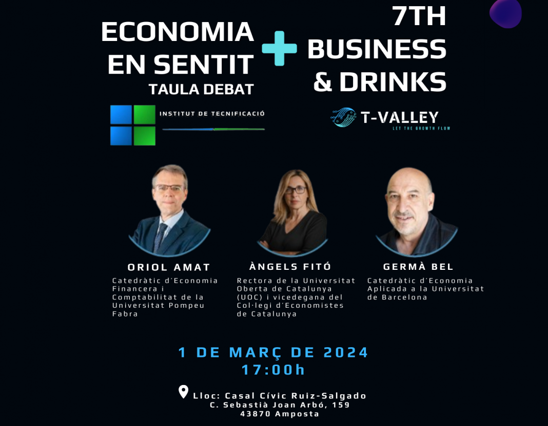 Seguidament al debat, es celebrarà el tradicional Business & Drinks de T-Valley, amb la consellera delegada Vanessa Troncho exposant les darreres novetats del projecte i les metes aconseguides. L’assistència al Business and Drinks requereix registre previ a través del següent enllaç: https://forms.gle/4kXmjjDGYJQ9UeTp6