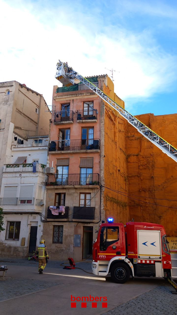 En arribar al lloc, han vist que el foc s’havia originat a la cinquena planta de l’edifici, on han localitzat un home que ha estat traslladat a l’Hospital Verge de la Cinta en estat greu. Paral·lelament, els bombers han desallotjat una desena de veïns que mitja hora més tard ja han pogut tornar als seus habitatges, una vegada el foc s’ha donat per extingit (11.20 h).