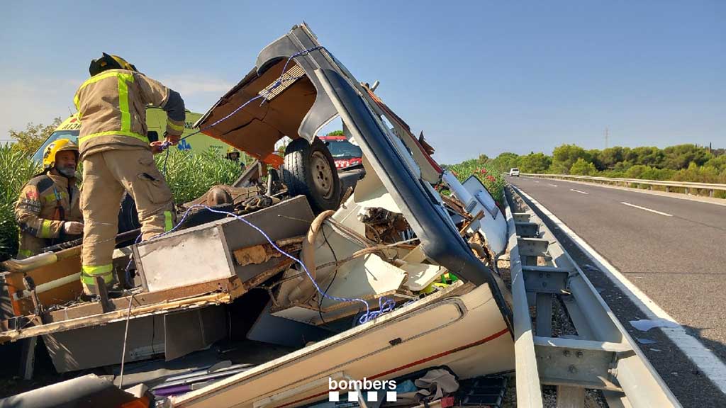 El vehicle ha quedat bolcat al lateral de la via. Els serveis d’emergències han assegurat els riscos del vehicle i estabilitzat els elements de l’autocaravana. Les persones que viatjaven en l’autocaravana han pogut sortir pel seu propi peu.