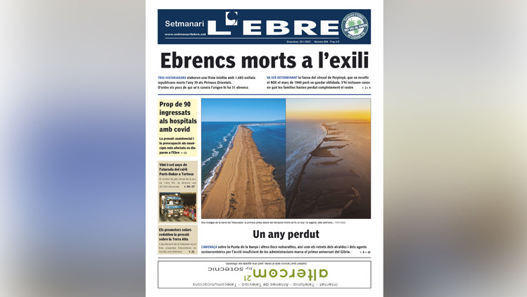 La fotografia de portada és per a una doble imatge, la de la Barra del Trabucador abans del temporal Gloria, del qual se’n complix un any, i del mateix espai esta setmana, després de la borrasca Filomena.