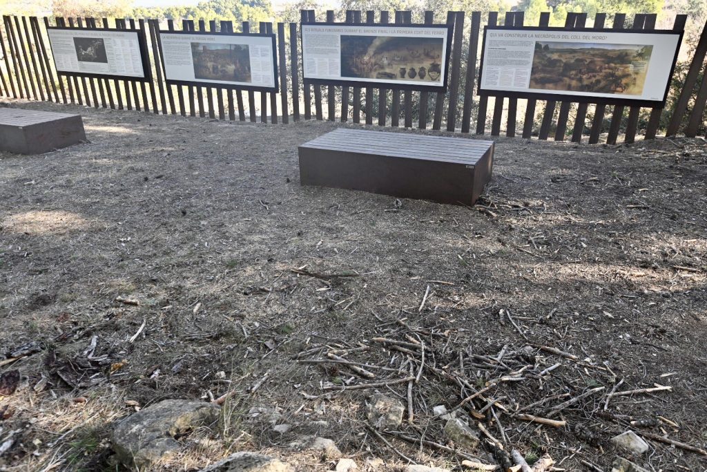 A través de set plafons explicatius, ubicats a la zona de la necròpolis que es coneix amb el nom de les Maries, els visitants poden entendre millor la història d’aquest jaciment. L’origen de la necròpolis del Coll del Moro se situa al segle IX aC, a les acaballes de l’edat del bronze i en el marc de la tradició cultural coneguda com la Cultura dels Camps d’Urnes i la seva pervivència com a recinte funerari s’allarga fins a època ibèrica.