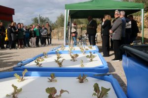 La primera unitat portàtil aquapònica que ha posat en marxa l’IRTA a Catalunya es troba ja en funcionament a la Fundació Mercè Pla de Tortosa amb l’objectiu d’integrar persones amb discapacitats. El projecte permet a una vintena d’usuaris del centre ocupacional tenir cura d’un sistema que ajuda, a partir de la transformació com a nutrients dels excrements dels peixos (llisses en aquest cas) que es crien en un tanc, fer créixer enciams sense l’ús de terra. L’IRTA vol fomentar amb la iniciativa el coneixement i la pràctica de la producció aqüícola i agrícola circulars. La instal·lació, que ha comptat amb finançament també del Grup d’Acció Local de Pesca (GALP) Mar de l’Ebre, és la primera que es pot desmuntar i traslladar fàcilment.