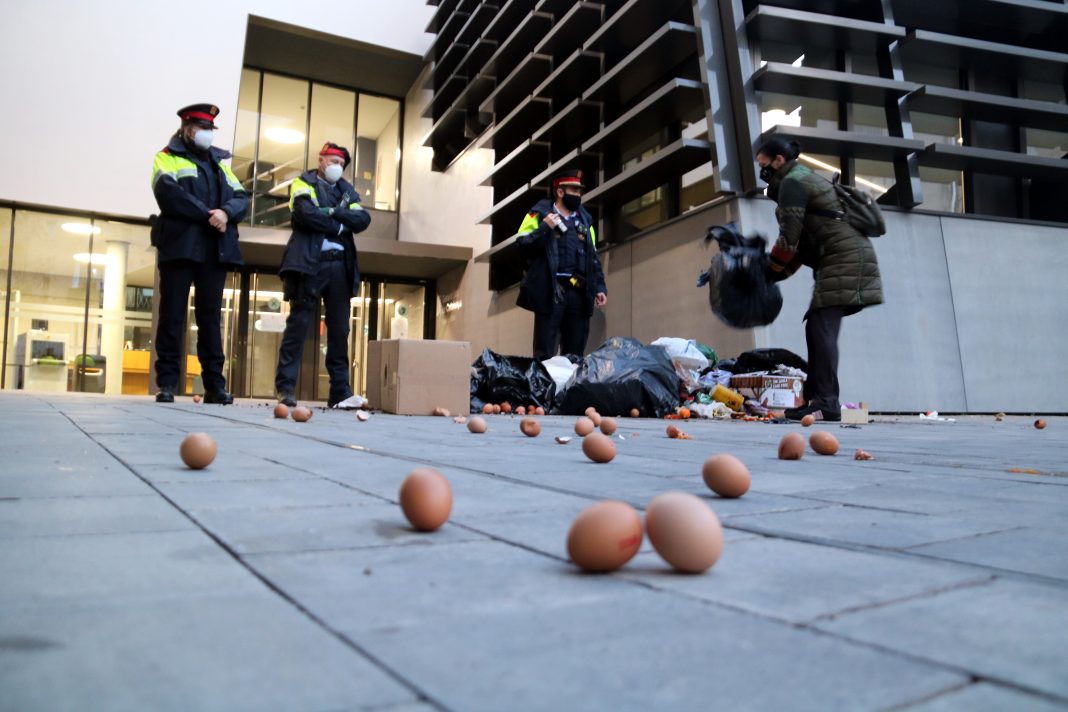 A quarts de sis de la tarda, un grup amb més de 50 restauradors, proveïdors i veïns que donen suport al col·lectiu, s’han apropat a les portes de la delegació del Govern a les Terres de l’Ebre i hi ha abocat tota mena de brossa. Indignats i enfadats amb les noves restriccions horàries que ha establert el Govern per al sector, han demanat a crits que els deixin treballar i han protestat davant l’impediment dels Mossos d’apropar-se a les portes de la seu governamental.